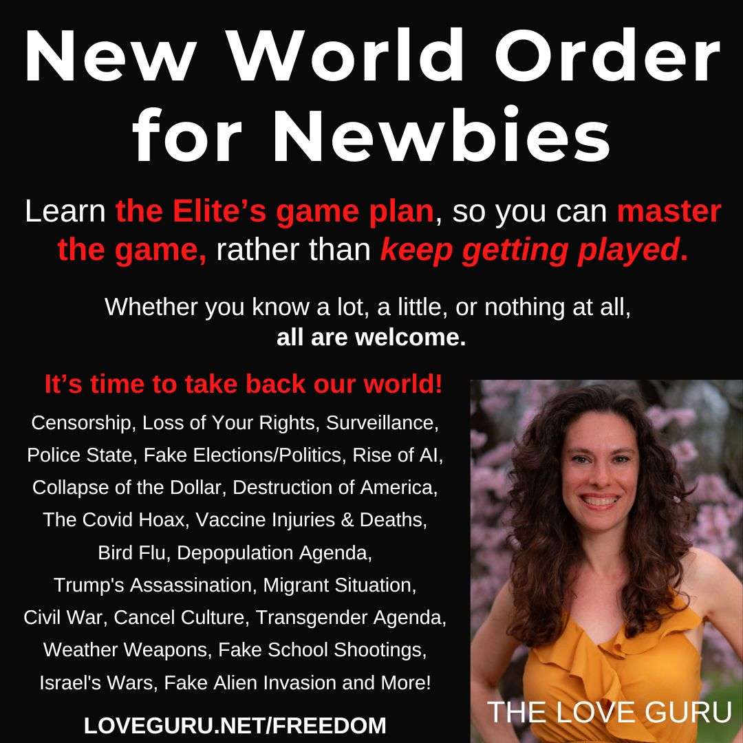This is an open forum where you come to ask your questions about the NWO and I will answer. One question leads to the next and it’s a fascinating (and addicting) topic. Come to one of the classes or all of them! Each class is difference based on who attends and questions asked. The New World Order is a very big topic and there’s a lot to learn. Censorship, Loss of your rights, surveillance, police state, fake elections/politics, rise of AI, collapse of the dollar, destruction of America, the covid hoax, vaccine injuries and deaths, bird flu, depopulation agenda, Trump’s assassination, migrant situation, civil war, cancel culture, transgender agenda, weather weapons, fake school shootings, Israel’s wars, immigration riots, fake alien invasion and more!