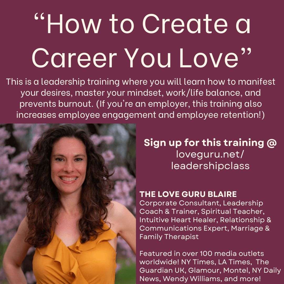 Leadership training where you’ll learn how to manifest your desires, master your mindset, work/life balance. Prevents burnout. (If you’re an employer, also increases employee engagement & retention!)
