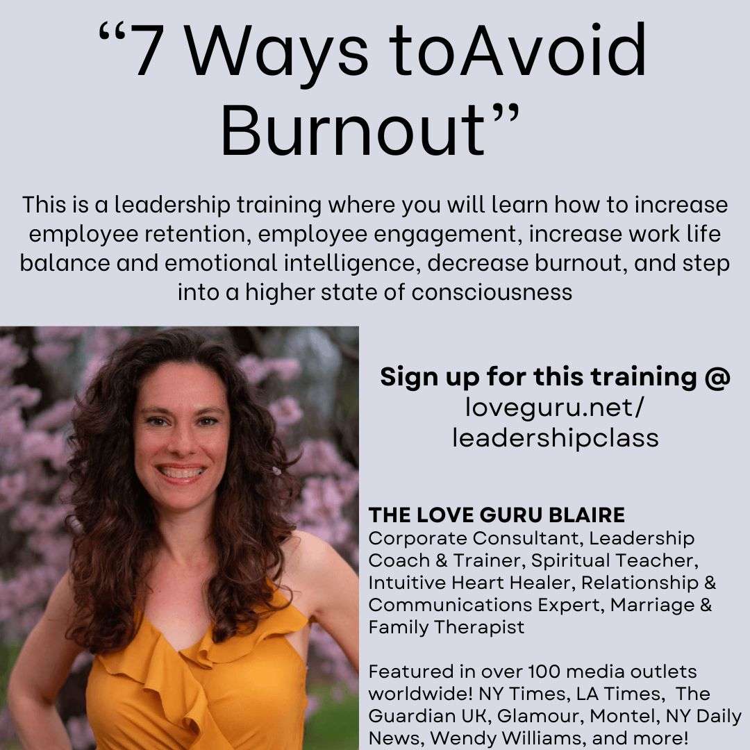 Leadership training where you’ll learn how to increase employee retention, employee engagement, increase work/life balance, emotional intelligence, decrease burnout, and step into a higher states of consciousness.